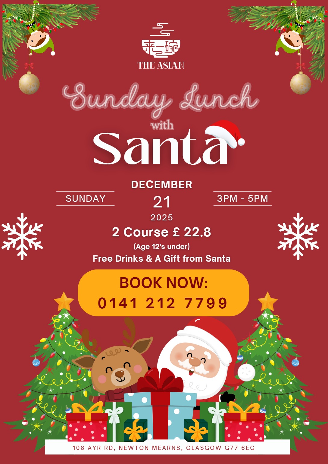 Santa will be stopping by THE ASIAN Newton Mearns this December for this Magical Lunch filled with festive cheer, delicious food & hearts warming moment